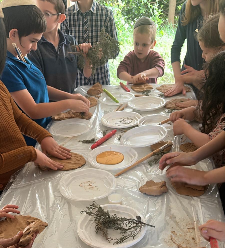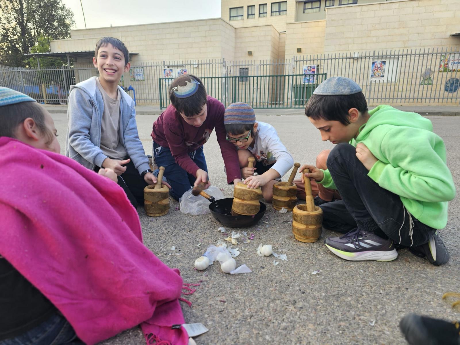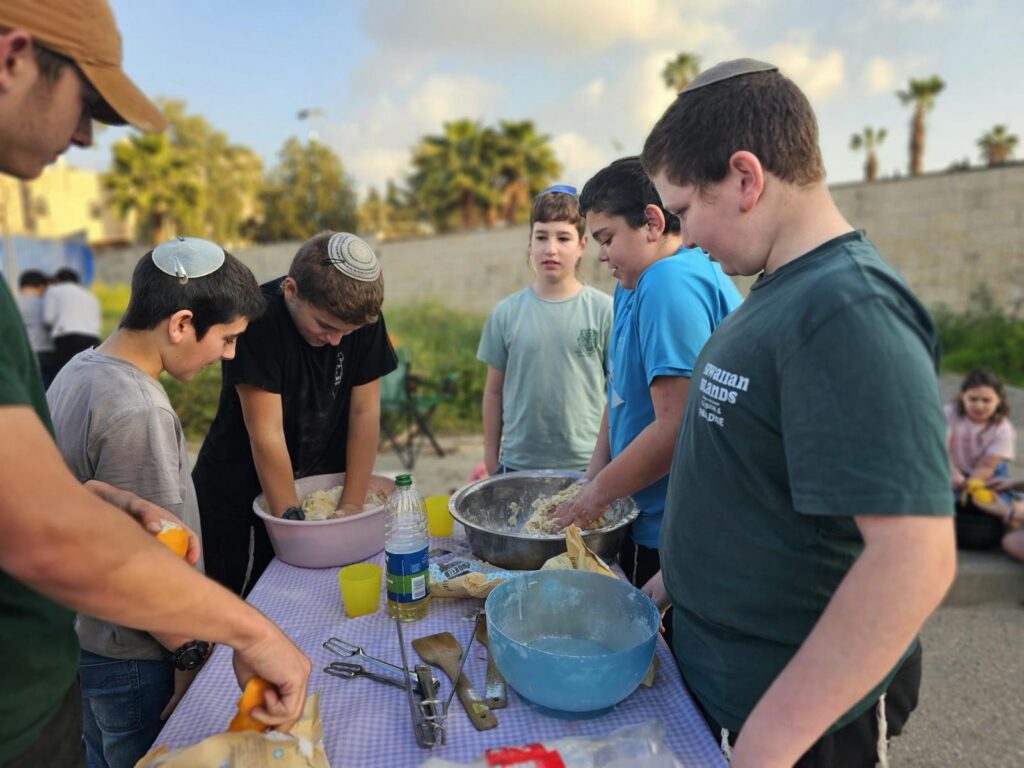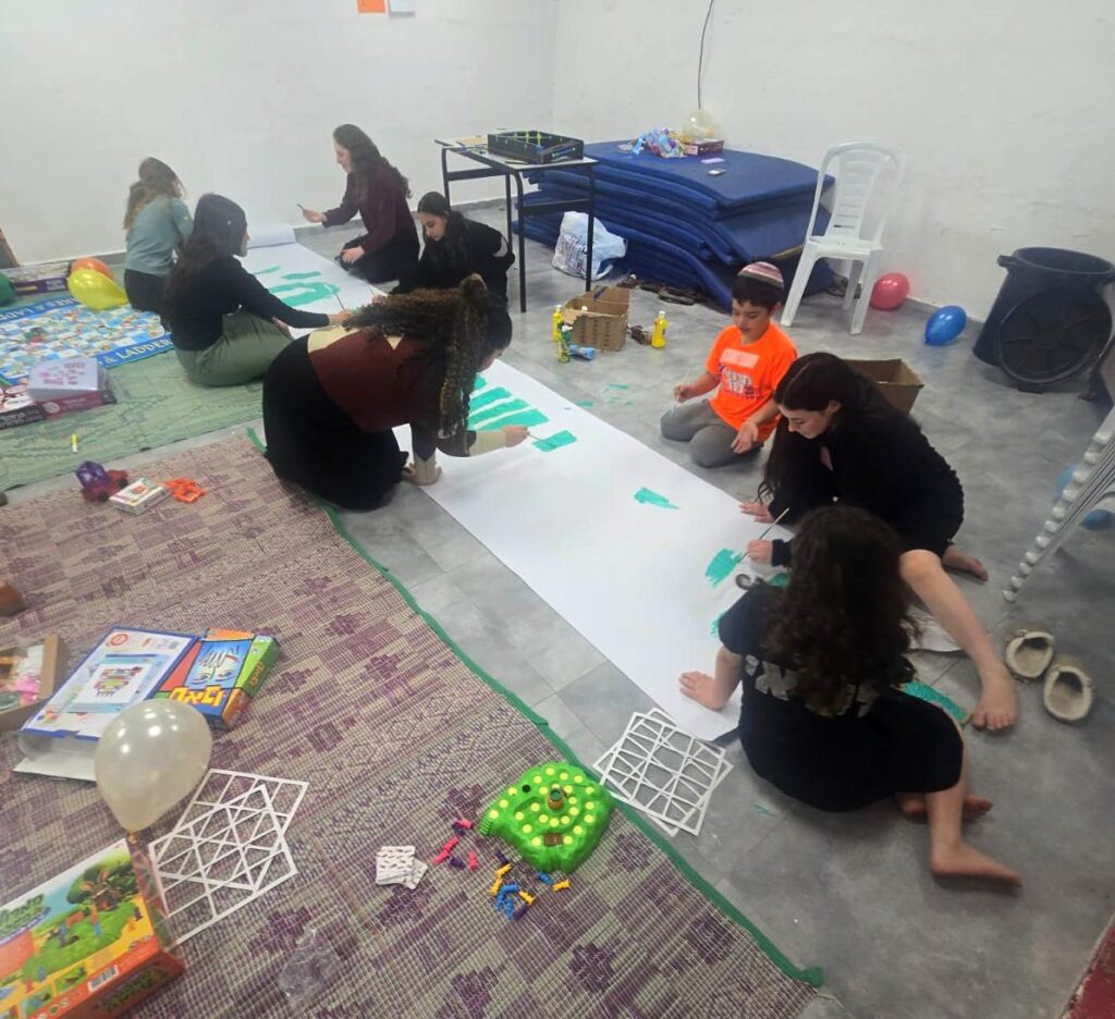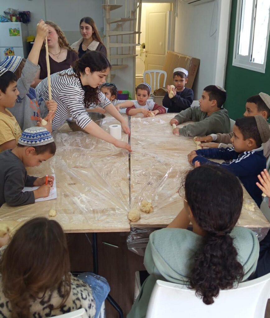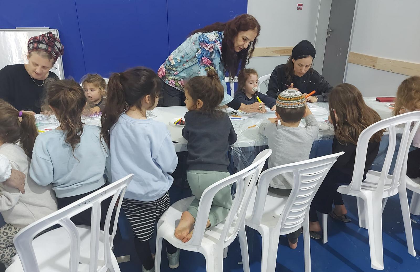 ילדי שכונת חבד בסדנת פיצות בסמוך למרחב מוגן. צילום: עיריית לוד
