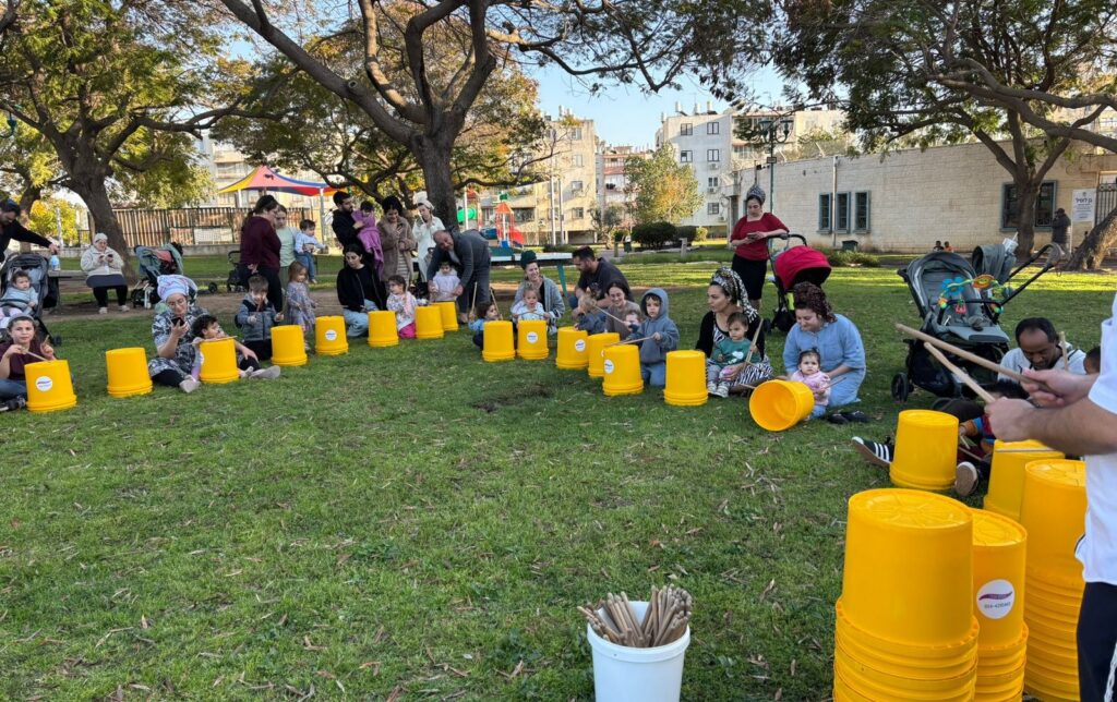 סדנת תיפוף בשכונות לוד בזמן מלחמת שאגת הארי. צילום: עיריית לוד