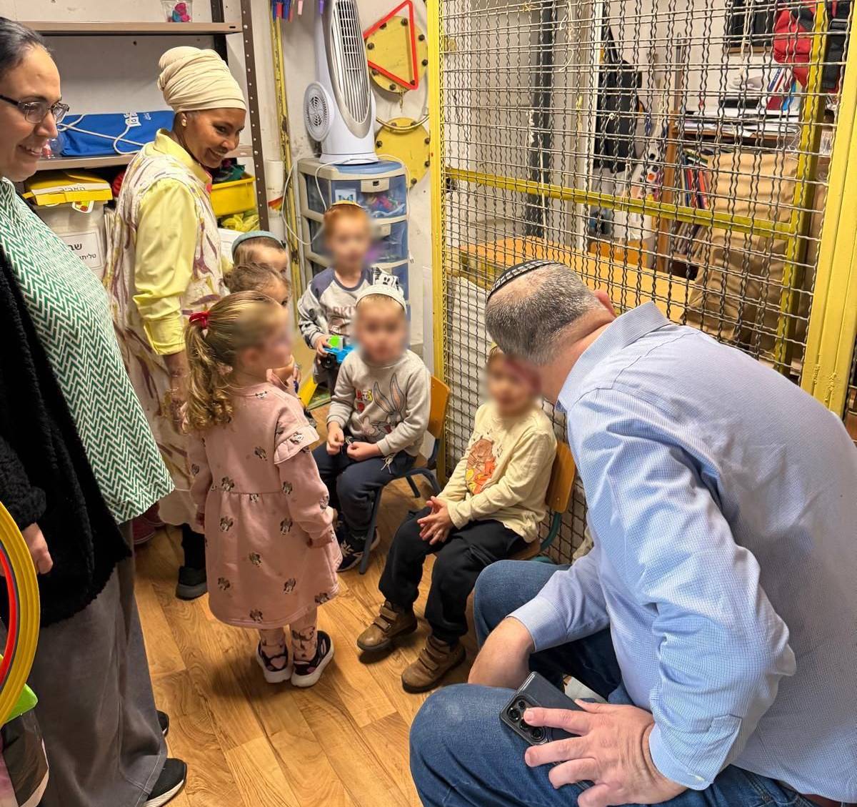 רביבו במקלט שבגן הילדים ברגע של אזעקה בעקבות ירי טילים. מקום מוגן ובטוח לתלמידים. צילום: עיריית לוד